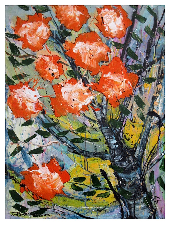 The first flowers come through, in the garden, the park, dunes / forests. Just an impulse to continue with this series now that it is so striking that these early bloomers are reporting. A number of works on a canvas size of 60x80 cm with acrylic and oil paint. Looking for a representation of how these independent bloomers relate to their immediate environment.